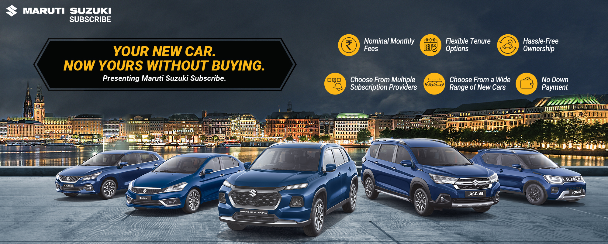 Maruti Suzuki Subscribe enables all customers to enjoy driving their preferred Maruti Suzuki cars without having to deal with all the financial responsibilities that come with owning a car.All you need to do is opt for a monthly subscription plan at a fixed monthly fee, which includes the routine maintenance and insurance costs, and choose a flexible tenure. At Shree Gopal Auto in, Anisabad, Patna, all Hatchback, Sedan, SUV, the MUV models line-up includes Baleno, Invicto, EVitara, Jimny, Ciaz, Ignis, Fronx, Grand Vitara, XL6. Here, you will enjoy Maruti Suzuki Subscribe benefits such as: